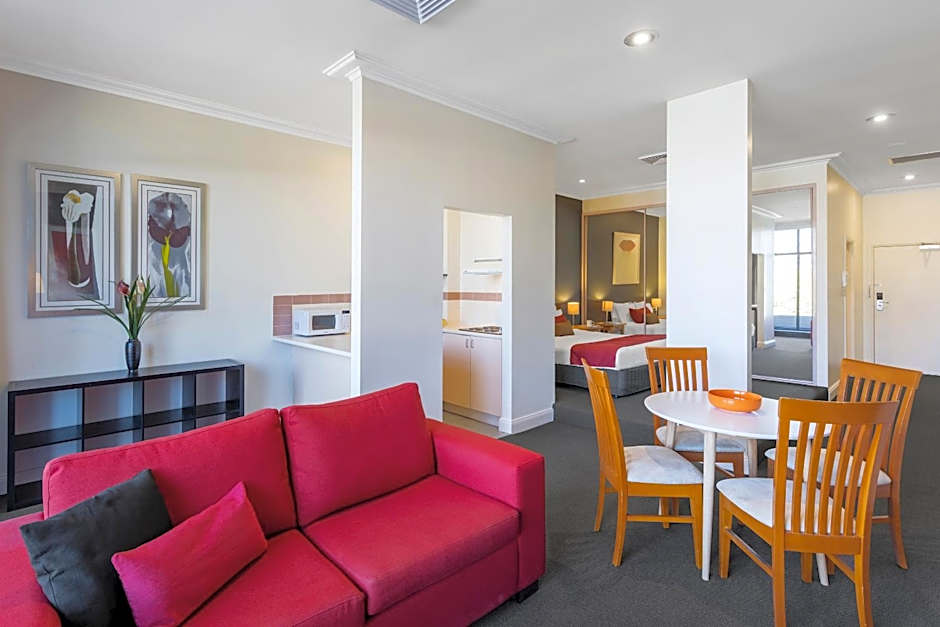 The Studio Apartments all vary in design, layout and bedding configuration. They are fully self-contained and have kitchenettes with a stove top and microwave, combined lounge and dining area with LCD TV with free to air, WiFi access, and an private bathroom. Some apartments offer internal laundry facilities. Alternatively a coin-operated guest laundry is located within the building.